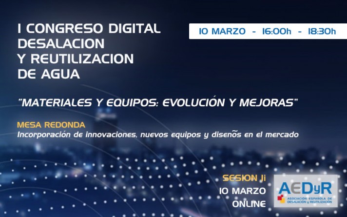 La Asociación Española de Desalación y Reutilización (AEDyR) pone en marcha el Primer Congreso Digital de Desalación y Reutilización de Agua, a celebrar en diferentes sesiones de febrero a junio de 2021. Este congreso surge por la necesidad del sector de poder mostrar sus novedades e innovaciones y su primera edición viene a completar la celebración de XIII Congreso Internacional que celebrará en la ciudad de Córdoba en el año 2022.