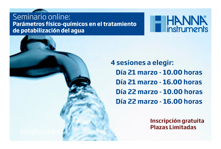 Hanna Instruments, dentro de su programa de formación on line, presenta el seminario: ´Parámetros físico-químicos en el tratamiento de potabilización del agua´, cuyo contenido es: