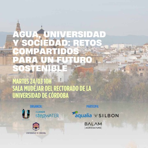 La Universidad de Córdoba (UCO), la Red Internacional de Universidades Lectoras y la Alianza StepbyWater organizan las ´I Jornadas Agua, Universidad y Empresa´, un espacio de reflexión y diálogo que reunirá a representantes del ámbito académico, institucional y empresarial para analizar los desafíos actuales en la gestión del agua y promover soluciones sostenibles desde la cooperación entre sectores. El encuentro se celebrará en el Rectorado de la Universidad de Córdoba el próximo 24 de marzo, en el marco de la conmemoración del Día Mundial del Agua.