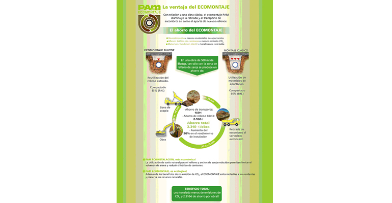 Con el objetivo de ecodiseñar y ecoinnovar utilizando todas las tecnologías disponibles para promover los principios de la sostenibilidad en beneficio de todos, Saint-Gobain PAM se consolida como empresa comprometida con el diseño de soluciones basadas en los principios del desarrollo sostenible. Su iniciativa ´verde´ es posible gracias a que el principal material empleado, fundición dúctil, puede ser reciclado indefinidamente sin perder sus propiedades.