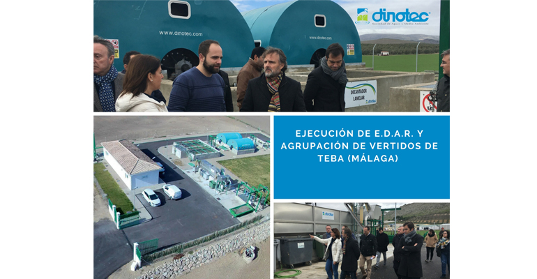 La obra de agrupación de vertidos y EDAR de Teba, cuya ejecución estuvo a cargo de la empresa sevillana Dinotec, consistió en la construcción tres colectores de gravedad con una longitud de aproximadamente 6000 m, una impulsión de 3.750 m de longitud, una estación de bombeo y la estación de tratamiento de aguas residuales urbanas.