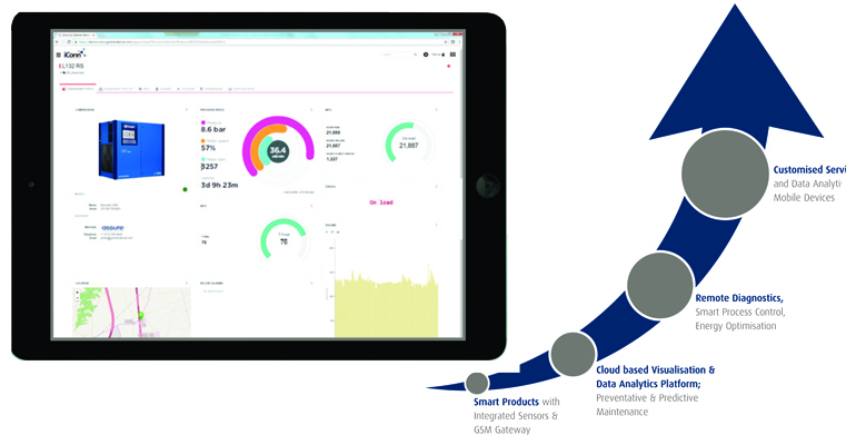 Bajo estas circunstancias, la plataforma iConn de Gardner Denver ha sido desarrollada para ofrecer análisis avanzados que permitan a los técnicos tener la instalación bajo control en todo momento. El sistema puede proporcionar tendencias, análisis predictivos y cognitivos en tiempo real para que los usuarios puedan rectificar posibles problemas antes de que sucedan.